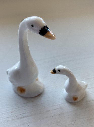 Vintage Genuine Bone China Mini Goose With Baby Taiwan Ebay
